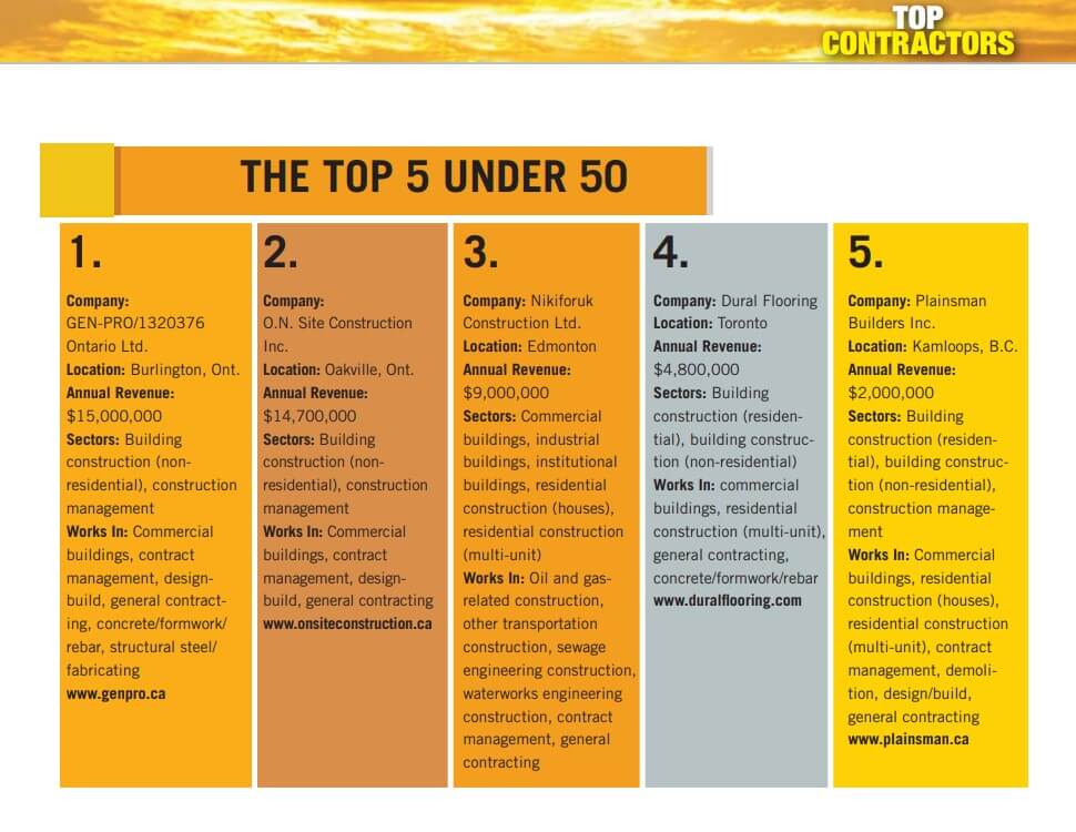 Celebrated a decade of achievement and were recognized as one of Canada’s Top 5 Contractors Under 50 Employees.